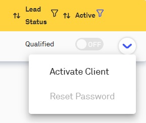 To activate the client, click on the dropdown menu to the right-hand side, and select the option to 'Activate Client':