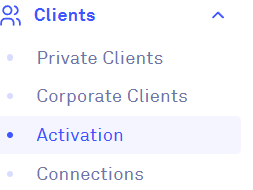 Click on 'Clients', then from the dropdown menu, select 'Activation':