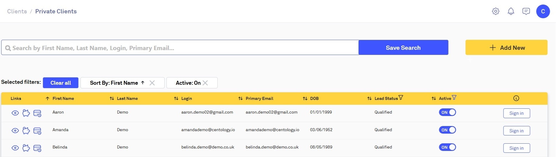This will take you to the Private Clients page. Here you can search for clients by their name and/or email address: