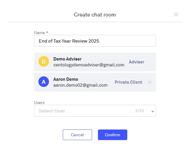 The Centology Chatroom functionality allows Clients, Advisers, and Adviser Administrators to easily communicate with one another in a safe and secure manner.
