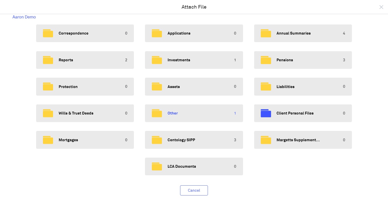 Once you have selected which participant's document location to look for the file to attach, you will be able to navigate through that participant's document library folders to select the file to attach: