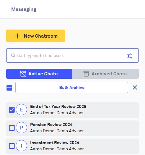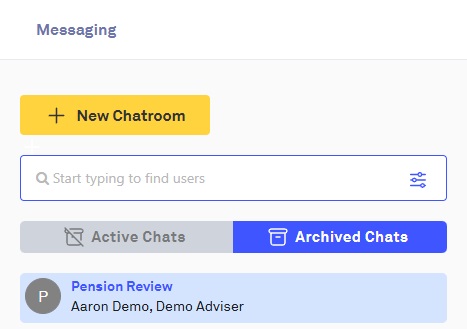 This will take the chatroom out of your 'Active Chats' view. Archived chatrooms can be accessed again by clicking on the 'Archived Chats' button: