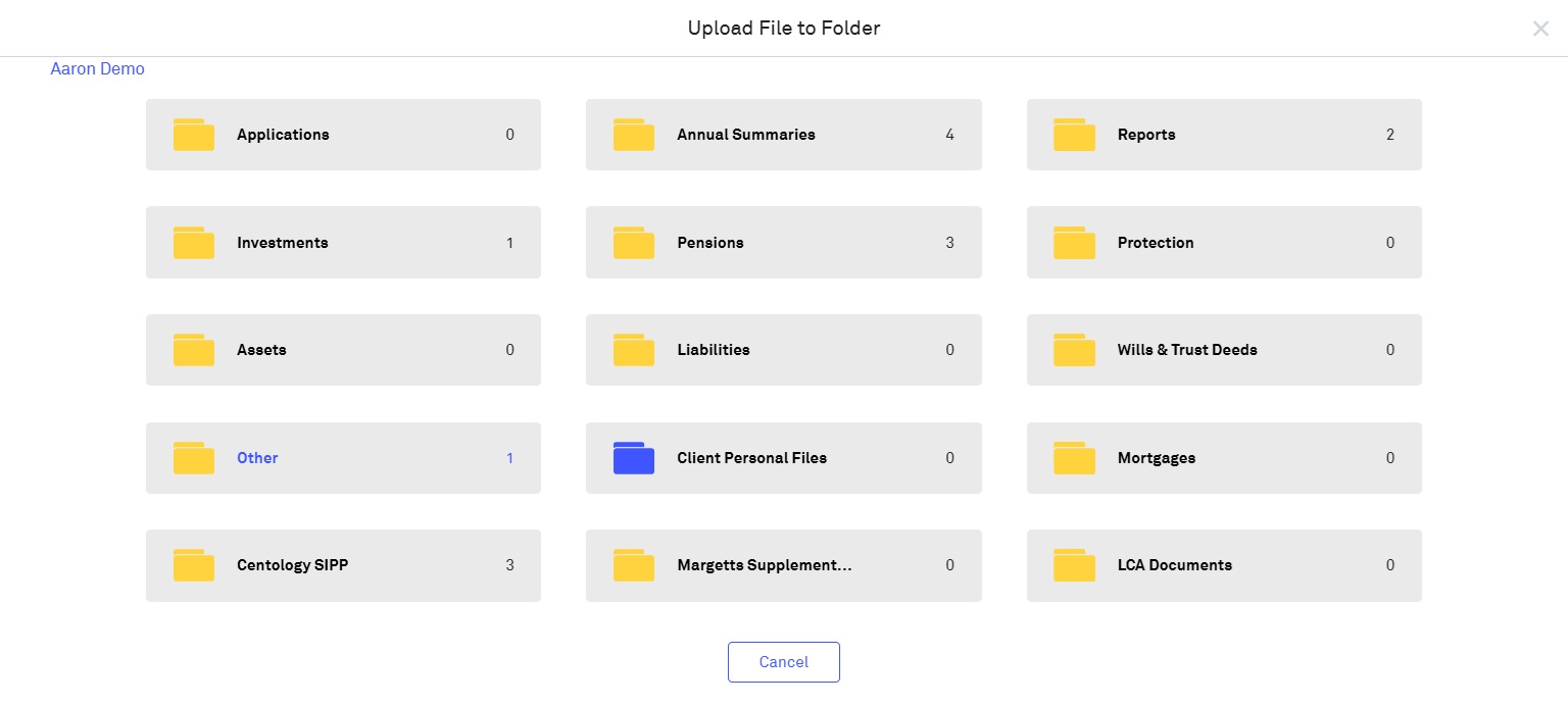 Once you have selected which participant's document location to upload to, you will then have to select the folder to upload to: