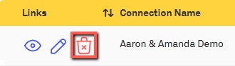 Once on the Connections page, click on the bin icon to the left-hand side of the Connection record to delete it: