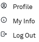 Clicking the blue icon containing your initial in the top right-hand corner of the Portal screen will generate a dropdown menu with the following options: