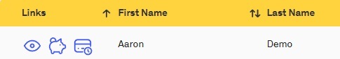A 'Links' section can be found to the left-hand side of the client record, each of the icons in the Links section has a unique function: