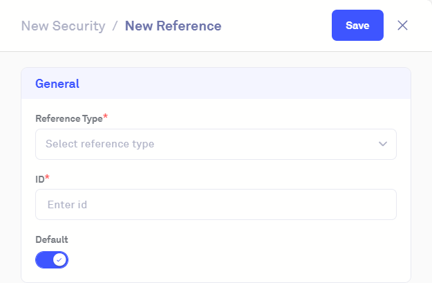 This will allow you to select the 'Reference Type' from a dropdown menu, as well as enter the security's ID: