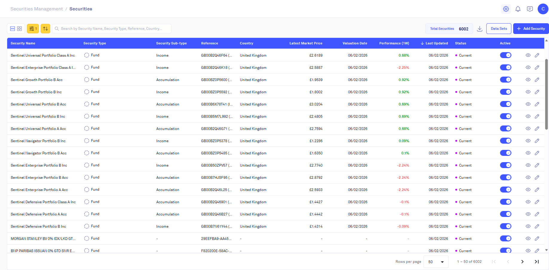 This will bring you to the securities grid where you can see an overview of the key details for the securities added to the Centology Portal: