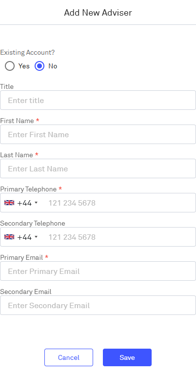 Next, fill out the details of the Adviser to create their Adviser user record: