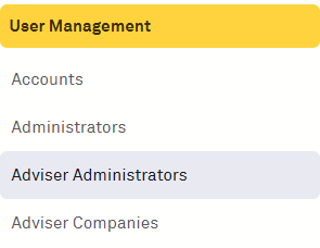 Once you have accessed the Maintenance Panel, select the option for 'Adviser Administrators':