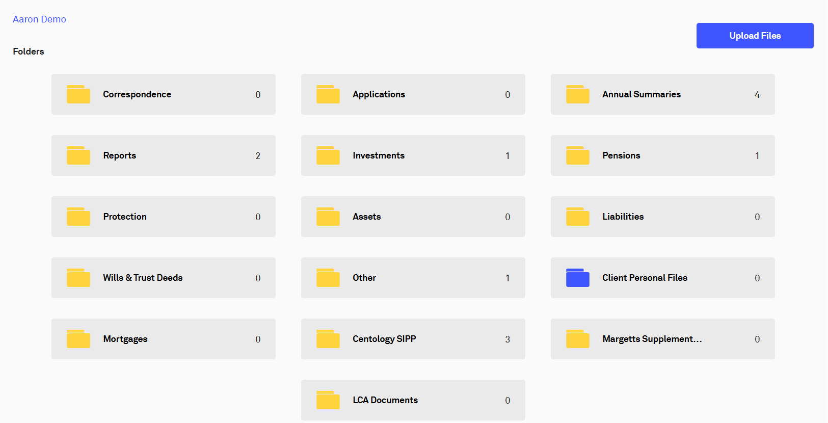 Once you have clicked the document icon, you will be redirected to your Secure Document Library. Here you can see the folders associated with your Centology Portal record: